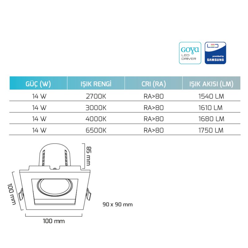 Goya 14W Sıva Altı Cob Led Armatür GY 1742-14