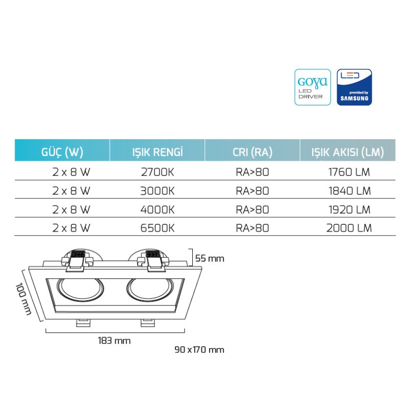 • RENK SIÇAKLIĞI : 2700K - 3000K - 4000K - 6500K