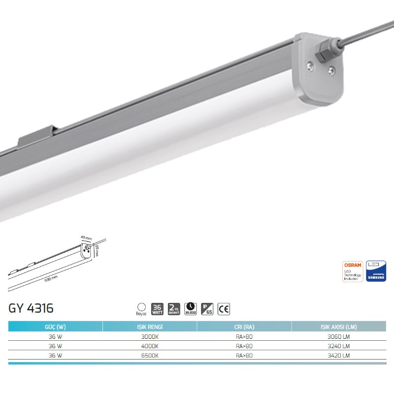 Goya 36W 113X5,5X4,9cm Ledli Etanj Armatür GY 4316 Osram