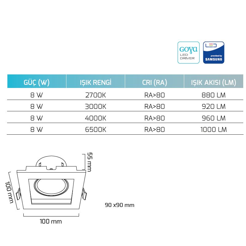 Goya 8W Sıva Altı Cob Led Armatür GY 1742-8